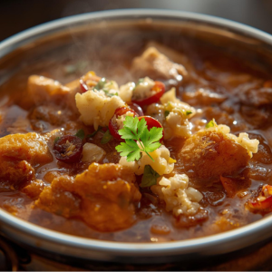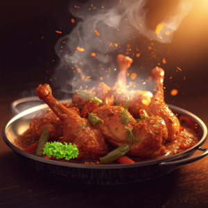 – A fragrant chicken curry cooked with a blend of spices and a creamy yogurt sauce.