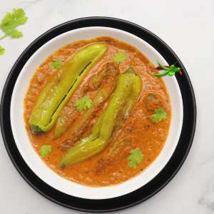 Mirchi Ka Salan A spicy curry made with green chilies, simmered in a tangy and nutty sauce.